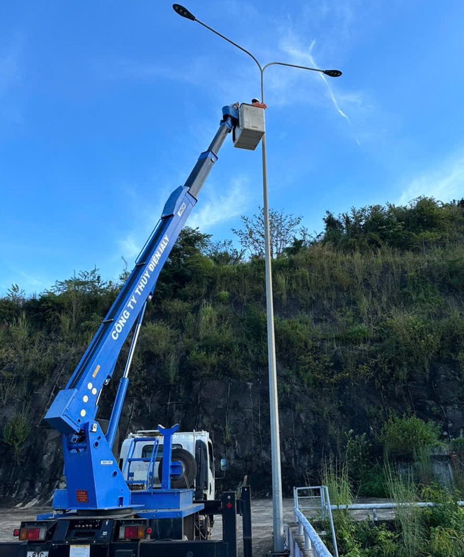 Tháo cổ trụ đèn chiếu sáng trên tuyến đập