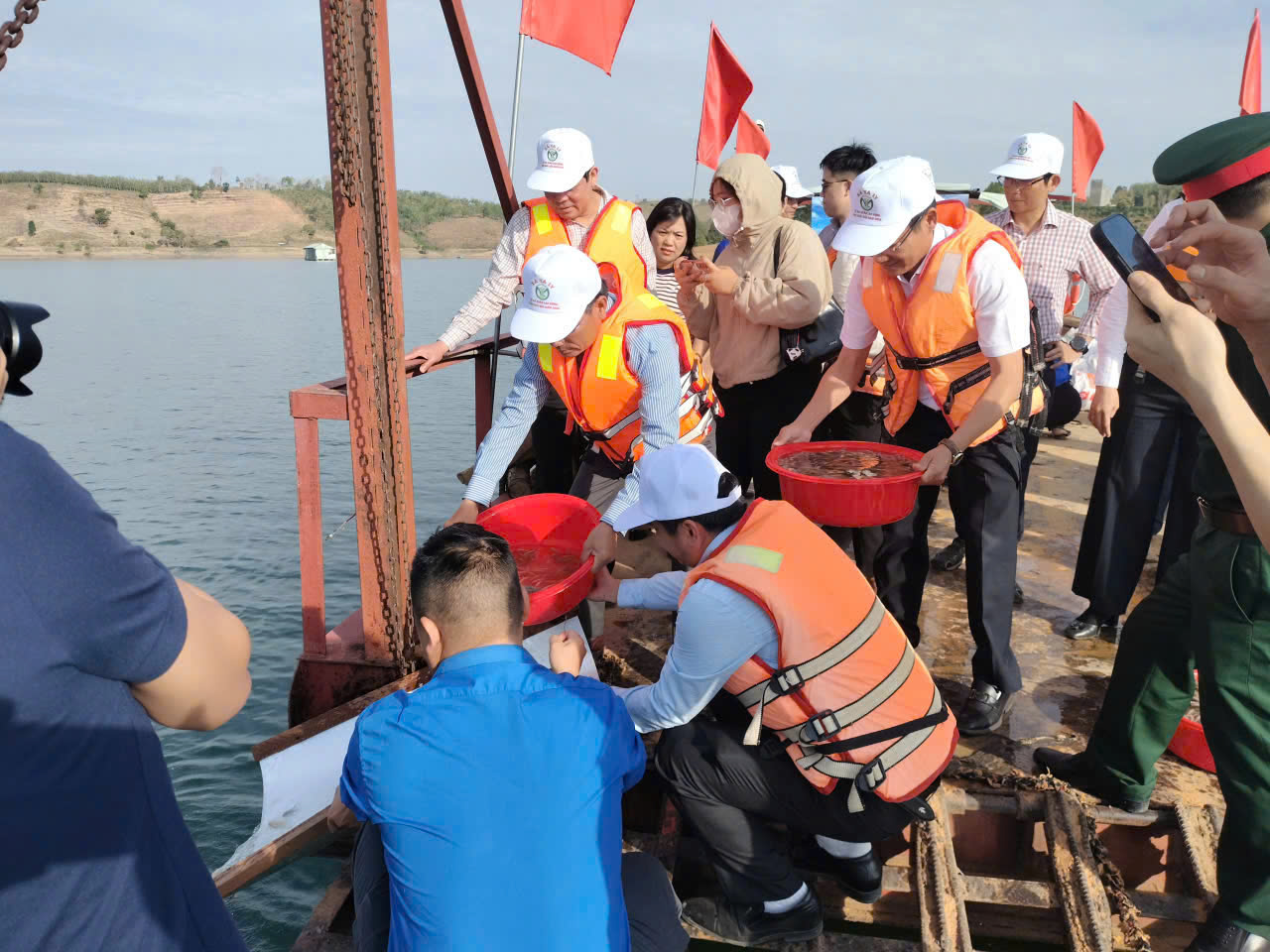 Sau nghi thức phát động, các đại biểu cùng bà con đã trực tiếp vận chuyển và thả hơn 300kg cá giống xuống lòng hồ thủy điện. Cơ cấu đàn cá thả đợt này gồm: Cá trắm, chép và diêu hồng. Đây là những loài cá được tuyển chọn kỹ lưỡng dựa trên các tiêu chí như: mang lại giá trị kinh cao, phù hợp với hệ sinh thái đặc thù của vùng lòng hồ thủy điện, nhanh lớn, giúp phục hồi quần thể nhanh chóng trong môi trường tự nhiên.
