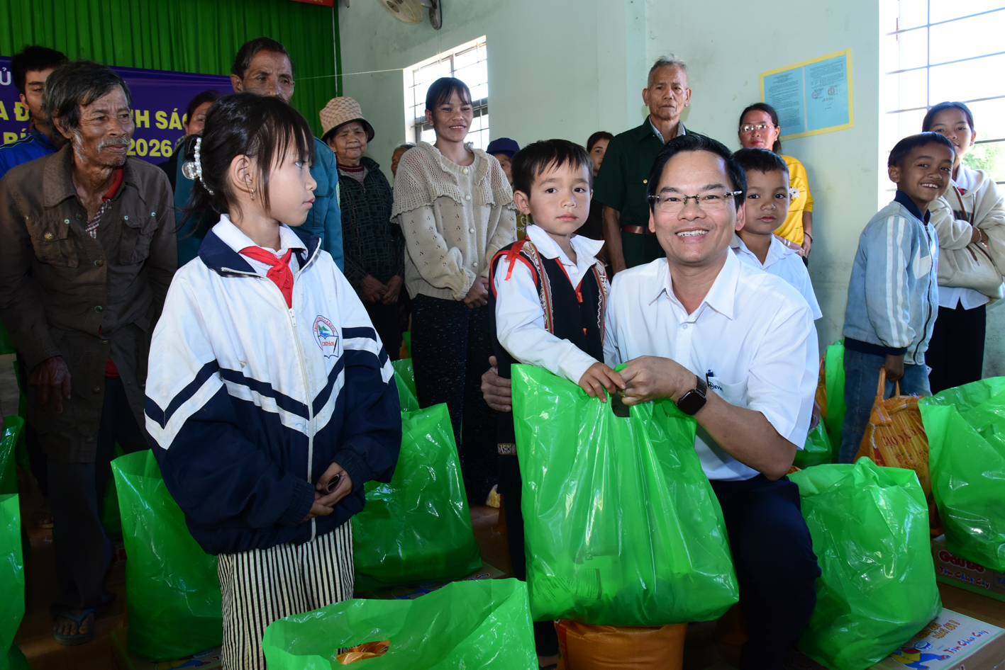 Bí thư đảng ủy, Giám đốc Công ty Đoàn Tiến Cường tặng quà học sinh nghèo vượt khó địa bàn Làng Díp, xã Ia Ly, Gia Lai