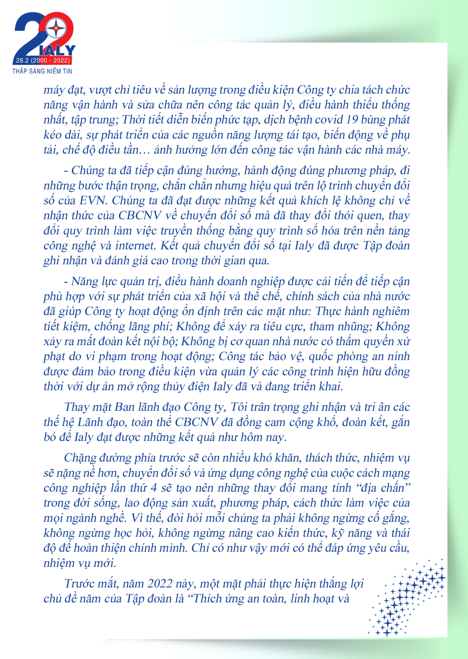 Kỷ niệm 22 năm thành lập Công ty Thủy điện Ialy (28.02.2000-28.02.2022)