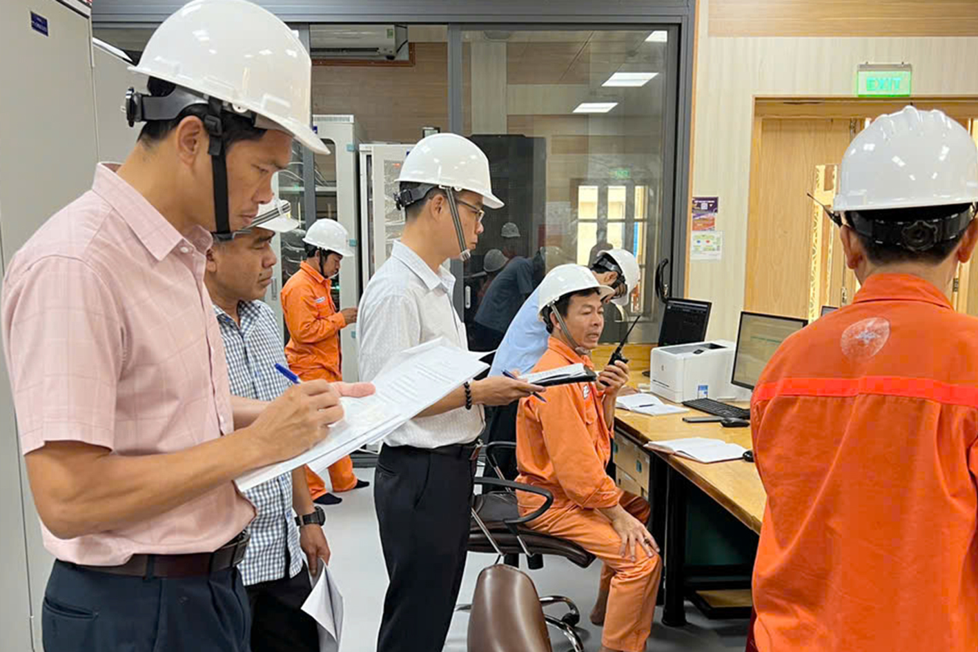 Lực lượng phụ trách chuyên môn giám sát quá trình diễn tập tại Phòng điều khiển trung tâm Nhà máy
