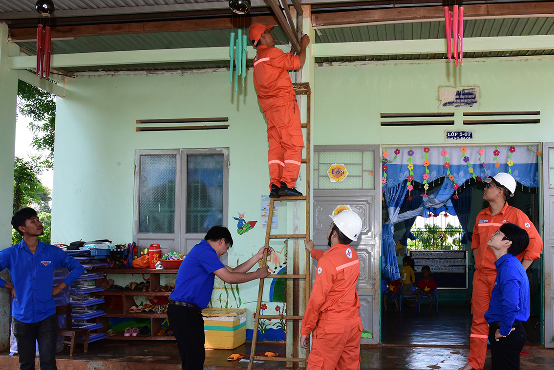 Với tinh thần hăng say, nhiệt huyết và trách nhiệm ngay trong buổi sáng, 05 hộ gia đình và 01 trường mầm non tại làng BLoi, xã Ia Ly đã được sửa chữa, thay mới hệ thống dây dẫn điện, lắp đặt bóng đèn tiết kiệm năng lượng, tủ điện….Các đoàn viên thanh niên kết hợp tuyên truyền sử dụng năng lượng tiết kiệm, hiệu quả với việc dán poster tại từng hộ dân trên địa bàn và đã tặng quà 05 hộ gia đình có hoàn cảnh khó khăn, mỗi suất 500.000 đồng.