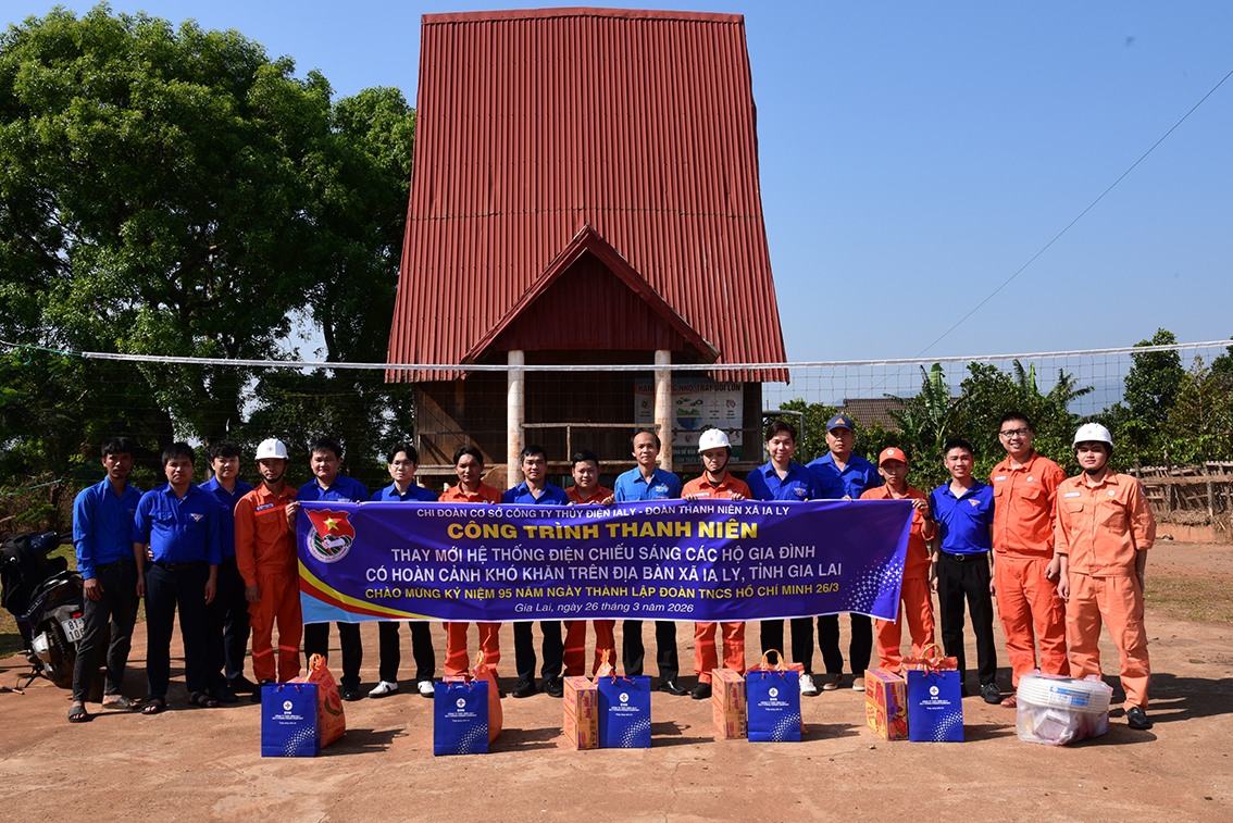 Nhân kỷ niệm 95 năm Ngày thành lập Đoàn TNCS Hồ Chí Minh (26/3/1931 – 26/3/2026), Chi đoàn cơ sở Công ty Thủy điện Ialy đã phối hợp với Xã đoàn Ia Ly (tỉnh Gia Lai) tổ chức thăm hỏi, tặng quà các hộ người già neo đơn và hộ gia đình có hoàn cảnh khó khăn.